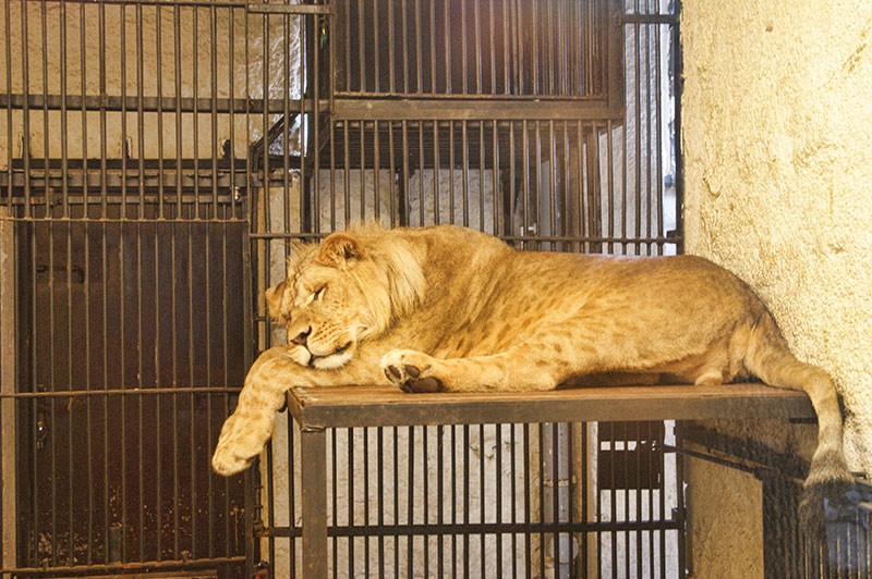 Na początku jest jeszcze w miarę, bardzo fajnie zrobione ogrodzenie z jakąś małpką, która skacze sobie po linach, bardzo fajnie to zrobili. Skończony jest też budynek z rybkami, gadami i o dziwo lwem i tygrysami (klatki wielkości dziecięcego pokoju w bloku, ale to podobno tylko na czas remontu). Budynek zrobiony ładnie i nowocześnie, dobrze widać zwierzaki. Minusem jest brak wentylacji czy jakiejkolwiek cyrkulacji powietrza.