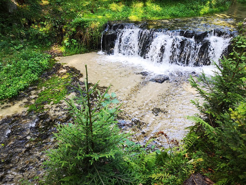 Sam wodospad, choć największy na Roztoczu, imponujący nie jest. Mniejszy od wzrostu przeciętnego człowieka, ale posiada swój urok i jako lokalne "naj" na pewno warto go zobaczyć. W pobliżu stoi ciekawe drzewo z odsłoniętymi korzeniami.