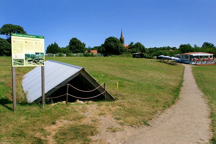 Co do aspektów zabytkowych nie jest już tak dobrze. Oglądając billboardy z informacjami o odkrytym najstarszym kościele na Pomorzu turysta oczekuje, że będzie mógł go zobaczyć. Niestety jedyne co widać to dziura w ziemi przykryta szczelnie brezentem. Nie wiem co za problem odsłonić mury, gdy jest słoneczna pogoda i nic im nie grozi. Można by przynajmniej wyobrazić sobie jak kiedyś wyglądała słynna świątynia założona przez biskupa i świętego. Jak się jednak dowiedziałem dopóki nie zostaną całkowicie zakończone prace archeologiczne, mury pozostaną zasłonięte.
