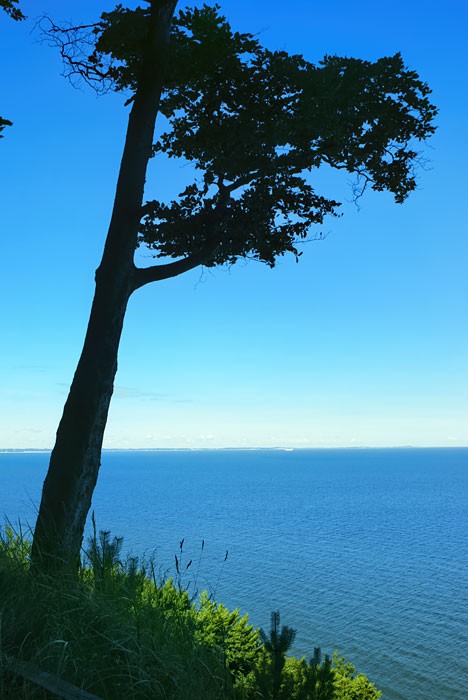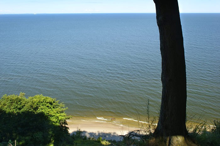 Z klifu rozciąga się ładna panorama morza od zachodu ograniczona nabrzeżem wyspy Wolin z portem w Świnoujściu. Widoczna jest też plaża w Międzyzdrojach, częściowo przysłonięta przez drzewa.