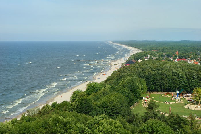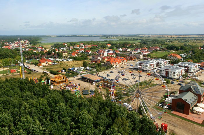Jest on bardzo rozległy, a wybrzeże Bałtyku prezentuje się przepięknie. Mamy też widok na pobliskie jezioro Liwia Łuża oraz infrastrukturę rozrywkową rozłożoną u stóp wieży, m.in. wesołe miasteczko i park miniatur. Warto mieć lornetkę i coś cieplejszego na sobie, bo wieje mocno. Ten wiatr i duża wysokość sprawiają, że małe dzieci raczej nie czują się tu dobrze.