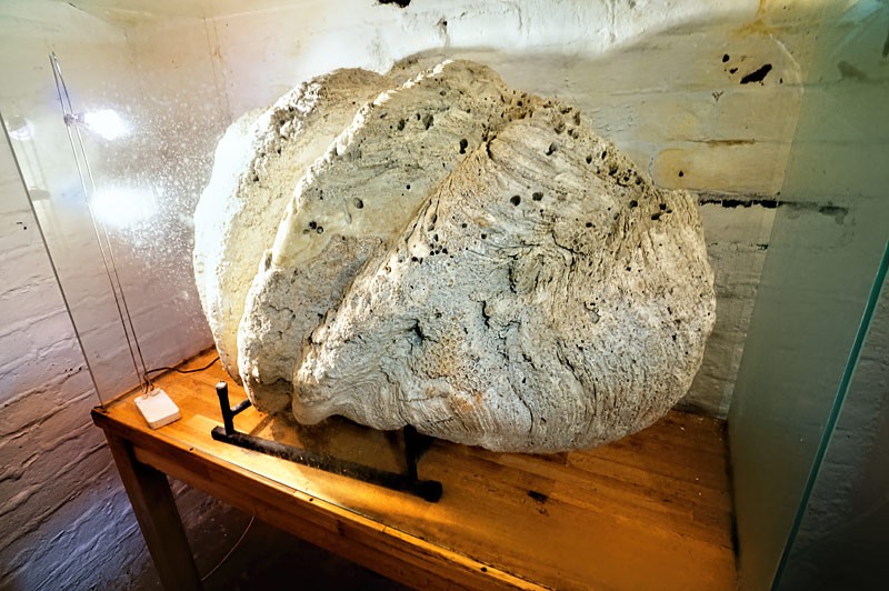 W okrągłej piwnicy z małymi bocznymi odnogami stawione są gablotki z ekspozycją. Pomieszczenie jest nieduże, ale zbiory warte uwagi. Minerały, meteoryty i prehistoryczne ciekawostki w rodzaju jaj dinozaurów, ogromnej muszli, różnych skamielin itp. Wszystkiego po trochę - w małej ilości, ale z pięknymi okazami