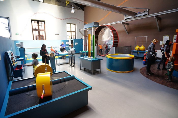 Muzeum to stara zajezdnia tramwajowa, ale aktualnie trudno ją tak nazywać, bo składa się z pięknie odnowionych budynków. Co ciekawe posiadają one ściany w typie muru pruskiego, czyli takie jak urokliwe budownictwo na Pomorzu. Budynków stoi dużo, ale tylko część z nich przeznaczonych jest dla turystów. Najciekawsza z punktu widzenia naszej pociechy była wystawa poświęcona kołu. Utworzono w niej stanowiska, na których prezentowano różne zagadnienia naukowe związane z kołem. Dzieciaki mogą tu np. spróbować pojeździć pojazdem z kwadratowymi kołami, niczym chomik pokręcić się w wielkim kołowrotku i jednocześnie podnieść rodzica w windzie dzięki wytworzonej energii, zobaczyć jak działają koła zębate w zegarze itp. Organizacja jest bardzo dobra. Pomyślano o najmłodszych dzieciach, dla których są do dyspozycji podesty, jest też miejsce do budowy wieży z wielkich brył. Zabawa jest więc świetna dla osób w każdym wieku i nie ma ograniczeń czasowych.