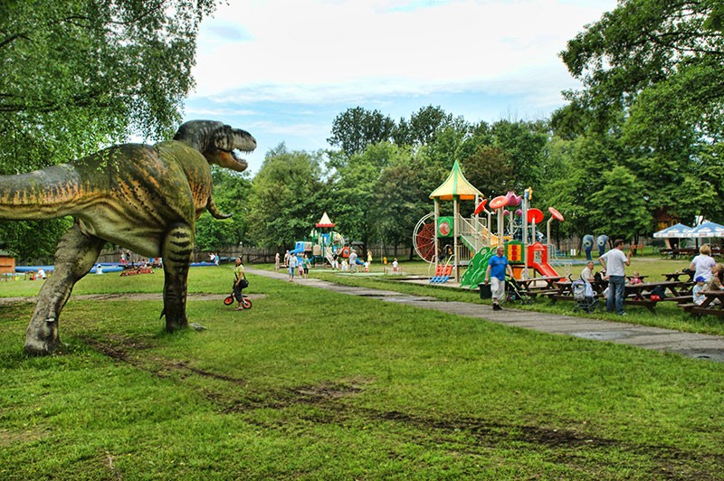 Park atrakcji podzielony jest na 2 części. Jedna to ścieżka z dinozaurami, bajkami i zwierzakami, druga część to park rozrywki. Dinozaurów nie ma za wiele, ale umieszczenie ich w zagrodach razem z żywymi zwierzętami jest całkiem oryginalne - przykładowo kucyki chodzące wokół gniazda kecalkoatla to fajny widok. Nie zabrakło paru figur ruchomych i ryczących. Dodatkowo wyróżnia się sposób prezentowania informacji o gadach w postaci słupka z przyciskiem, który uruchamia odtwarzanie nagrania. Takiego gadżetu nie widzieliśmy nawet w kompleksach JuraParków.