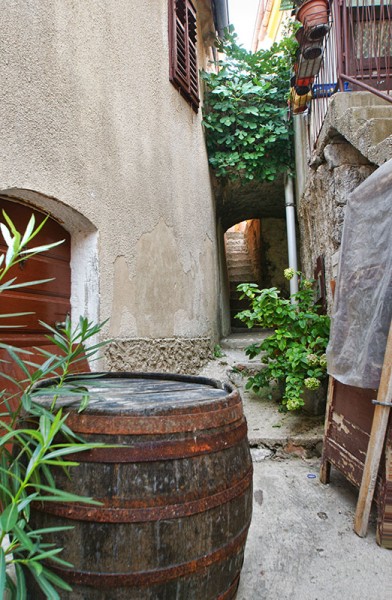 Vrbnik słynie z wytrawnego białego wina Zlahtina, więc koniecznie należy się w niego zaopatrzyć. Ja najtańsze znalazłem idąc z parkingu do starego miasta, po lewej stronie, mijamy kioski z owocami i przed pierwszą kamienicą zobaczymy wystawiony stolik z butelkami (20 kn za 1 litr). W sezonie prawdopodobnie jest dużo więcej punktów sprzedaży, bo w różnych częściach miasta stały bezczynnie beczki, służące pewnie do wystawienia wina.