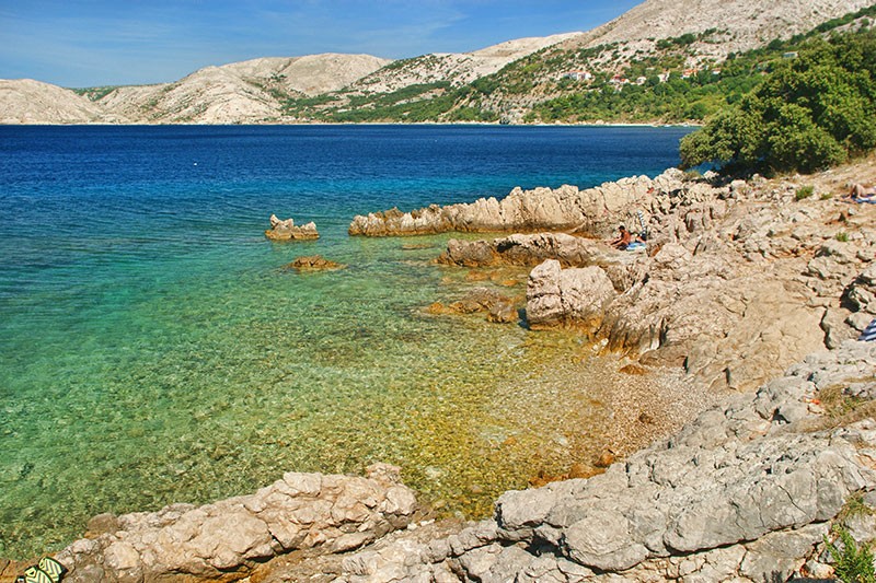 Stara Baśka urzekła mnie wspaniałymi krajobrazami i spokojem. Pod wieloma względami to przeciwieństwo Baśki. Mało ludzi, dzikie tereny, długie wybrzeże i urocze zatoczki. Droga w miasteczku bardzo wąska, ale wcale nie tak niebezpieczna jak piszą niektórzy. Kończy się płatnym parkingiem w małym porcie. Miłe jest, że parkingowy zna Polskę (był w Zakopanym), więc nie wziął dopłaty za przedłużony postój. Tuż obok niewielka plaża żwirowa, ale wystarczająco duża by we wrześniu było pełno miejsca. Woda bardzo czysta i błękitna ale zimna, wręcz lodowata. Idąc w lewo po kamieniach widać zatoczki, nad które można zejść i w samotności plażować. Nad parkingiem fajna knajpka z pięknym widokiem. Nad plażą przyjemna pizzeria. Bardzo ładne zatoki są też na początku miejscowości, ludzie stają tam autami przy drodze i schodzą w dół po stromym stoku, ale to z małym dzieckiem odpada. Ogólnie super miejsce, choć wg mnie raczej nie na dłuższy pobyt.