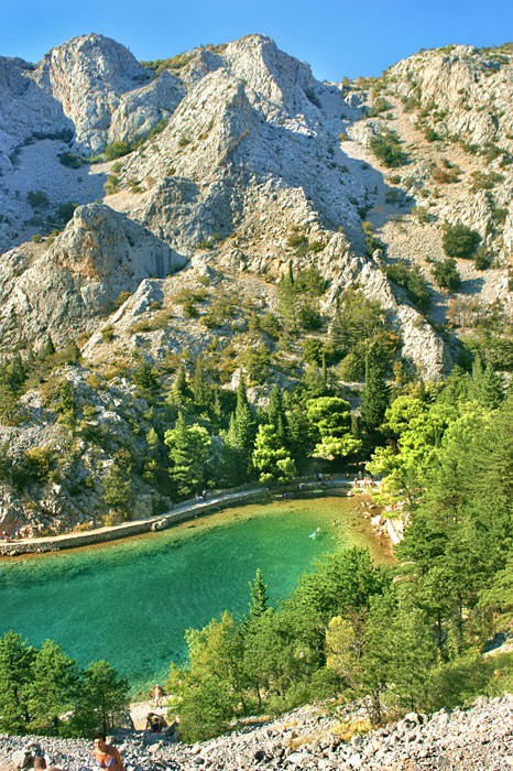 W Rab mamy do dyspozycji 3 godziny + czas na obiad (marny). Nie warto iść z przewodnikiem, ponieważ musi powtarzać wszystko w kilku językach, więc droga z nim dłuży się niemiłosiernie (opis miasta osobno). Gdy nasycimy się pięknem starówki, mamy okazję podziwiać spory pas wybrzeża wyspy z wysokim pasmem górskim i wykąpać się w zatoce Zavratnica. Jest to bardzo ładny zakątek objęty ochroną jako park przyrody. Chcąc zrobić dobre zdjęcia zatoki będącej równocześnie fiordem, trzeba powspinać się po kamienistym stoku. Woda także pełna jest kamieni i bez odpowiedniego obuwia może być ciężko z pływaniem. Przed plażą widać w wodzie zatopioną łódź niemiecką z czasów II wojny św. Można w niej nurkować.