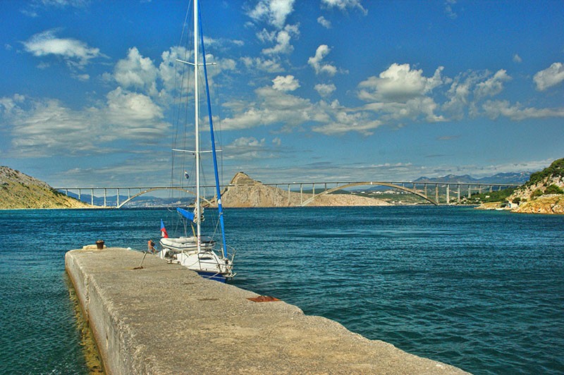 Voz to pierwsza miejscowość za mostem prowadzącym na wyspę Krk (Krčki most). Nie wiem czy ktoś tu w ogóle zamieszkuje, bo żadnej zabudowy nie widać, ale przybywa się tu z jednego powodu - pięknych widoków na Adriatyk, góry i przede wszystkim na słynny most. Z miejsca tego doskonale widać całą budowlę. Jest tu też ładna i głęboka zatoka (nawet 47 głębokości!) oraz stary kuter rybacki na brzegu. Aby trafić do Voz, za mostem skręcamy w lewo wg znaków. Warto zjechać na chwilę z głównej drogi, bo ładnych widoków nigdy za wiele...