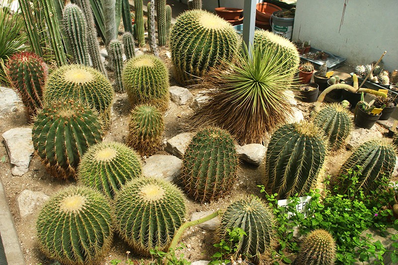 Najładniejszy jest rejon małego stawu po lewej stronie od wejścia. Myśleliśmy, że będzie więcej takich miejsc, ale niestety nie. Jest trochę kwiatów, ciekawych roślin i drzew, ale ogólnie bez rewelacji. Na końcu ogrodu stoją szklarnie i palmiarnia. Jest w nich przede wszystkim cała masa kaktusów i sukulentów, ale bez jakichś spektakularnych okazów. Są też bananowce, ale nie miały owoców i inne egzotyczne drzewka. Niestety z budynkami tymi jest pewien problem - panuje w nich tak nieznośny klimat (skrajny ukrop), że nie da się zbyt długo wytrzymać. Żona z synem po wyjściu z jednej szklarni, nie dała już rady wejść do innej, więc resztę oglądnąłem szybko sam, zalewany potem. Pamiętam też, że jedna szklarnia albo jej część była zamknięta.