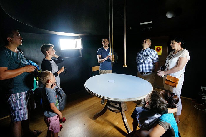 Potem czeka nas długa wspinaczka po schodach. Na jednym bilecie mamy aż 4 atrakcje: muzeum astronomii, magiczny pokój, camera obscura, taras widokowy i wszystkie znajdują się na najwyższych kondygnacjach budynku, a właściwie w jego wieży.