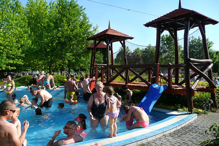 Lipot to malutka miejscowość z zawiłym dojazdem, ale kompleks termalny, choć niezbyt rozbudowany, jest wysokiej klasy. Nie mogliśmy w pełni skorzystać z tego co oferuje, bo najlepszy basen był dopiero przygotowywany do otwarcia. Przyjeżdżając przed sezonem trzeba więc sprawdzić dostępność na stronie WWW, niestety po węgiersku, bo w wersji angielskiej przetłumaczyli jak dotychczas tylko menu. Z tego co było widać basen ten ma urządzenia dla dzieci, sztuczna falę i 5 rur do zjeżdżania (w tym 2 bliźniacze) - wyglądał świetnie.