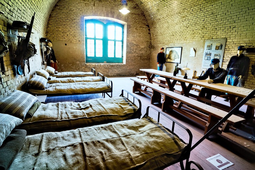 Do przejścia są kazamaty, stajnie, koszary. Długie i monotonne co wcale nie znaczy to, że nudne, wręcz przeciwnie. Można poczuć się jak w grze komputerowej, gdzie penetruje się mroczne korytarze budowli opanowanej przez potwory czy innych obcych. W niektórych salach zaaranżowano scenki z życia żołnierzy wraz z podkładem muzycznym, szkoda że nie ma ich więcej. Po dłuższym marszu wchodzimy do zagospodarowanej części, gdzie przygotowano multimedialną wystawę. Jest ona świetna i ponownie pozostaje niedosyt, że taka niewielka. Filmik pokazujący historię fortu jest zrobiony bardzo pomysłowo, tak by zainteresować dzieci.